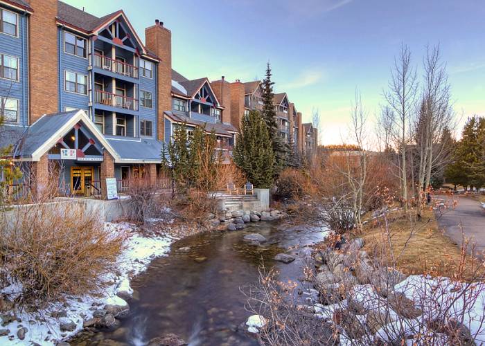 The River Mountain Lodge offers the convenience and comforts of a condominium (with hotel amenities) in the heart of historic downtown Breckenridge. The lodge is located across the street from the end of the 4 O'Clock Run at corner of Park Ave. and Ski Hill Road. Just ski down, walk across the street and you’re home! Just one block from Main Street Breckenridge and a short shuttle ride to the gondola or the Peak 9 base, the River Mountain Lodge is the perfect combination of mountain serenity and convenience.