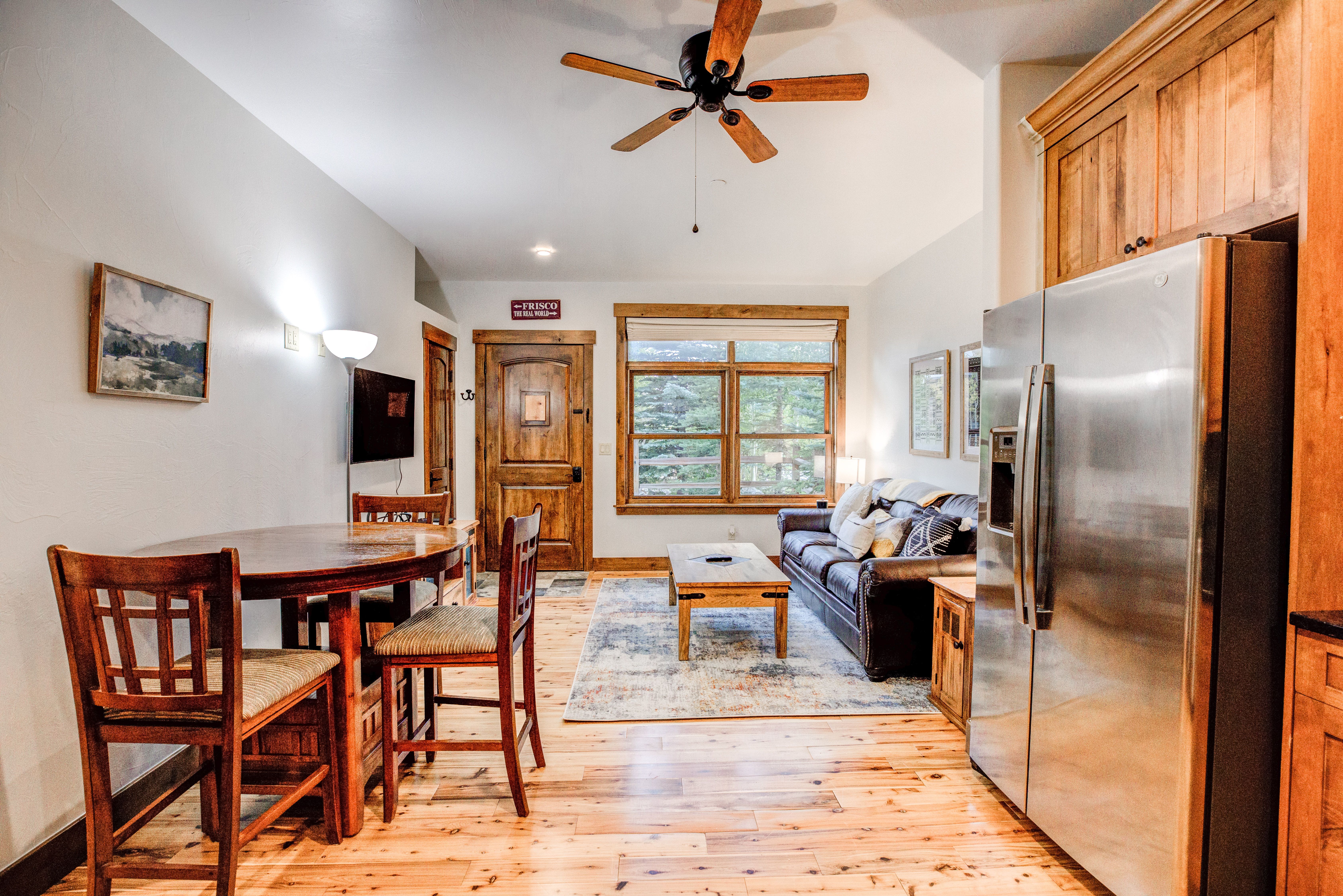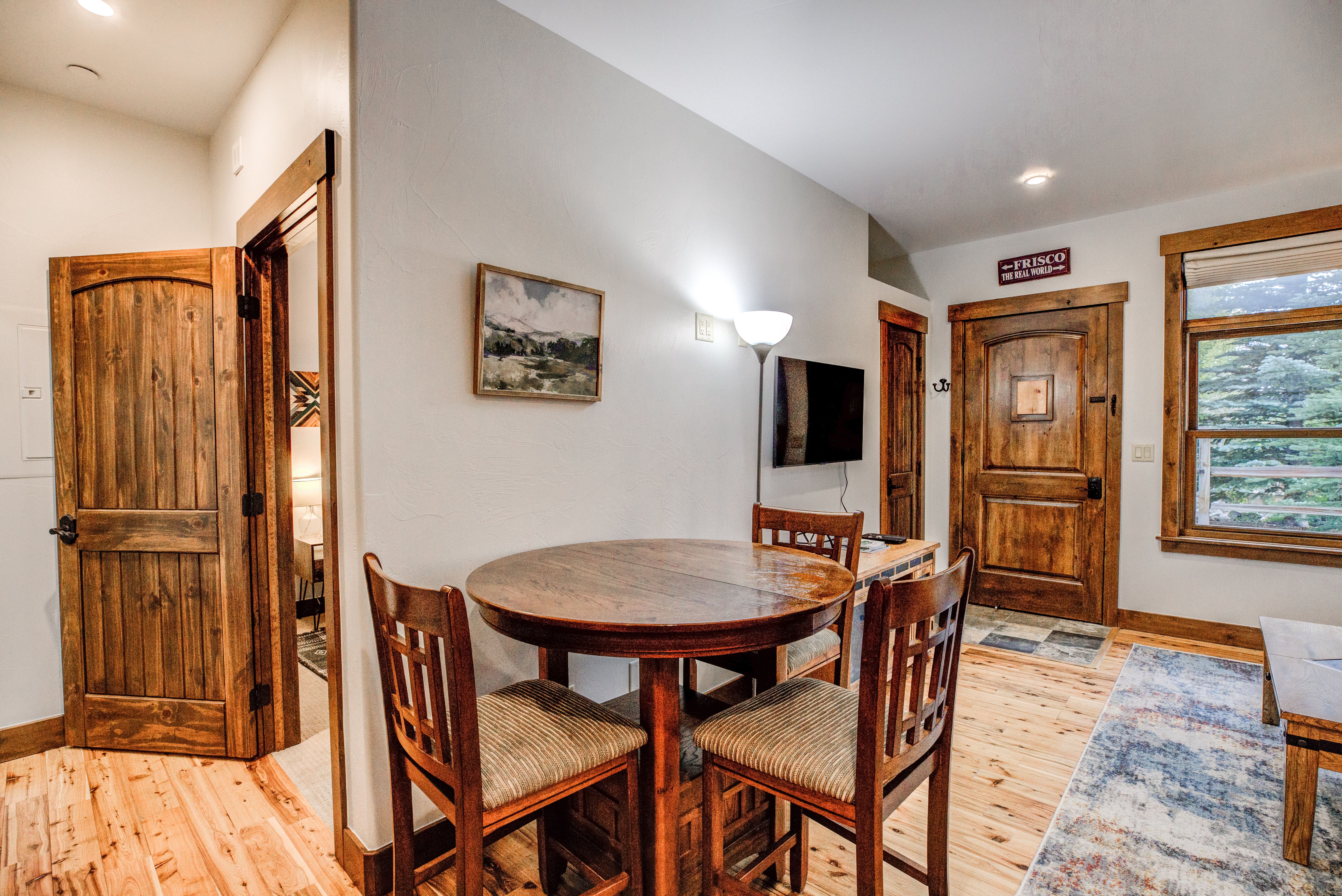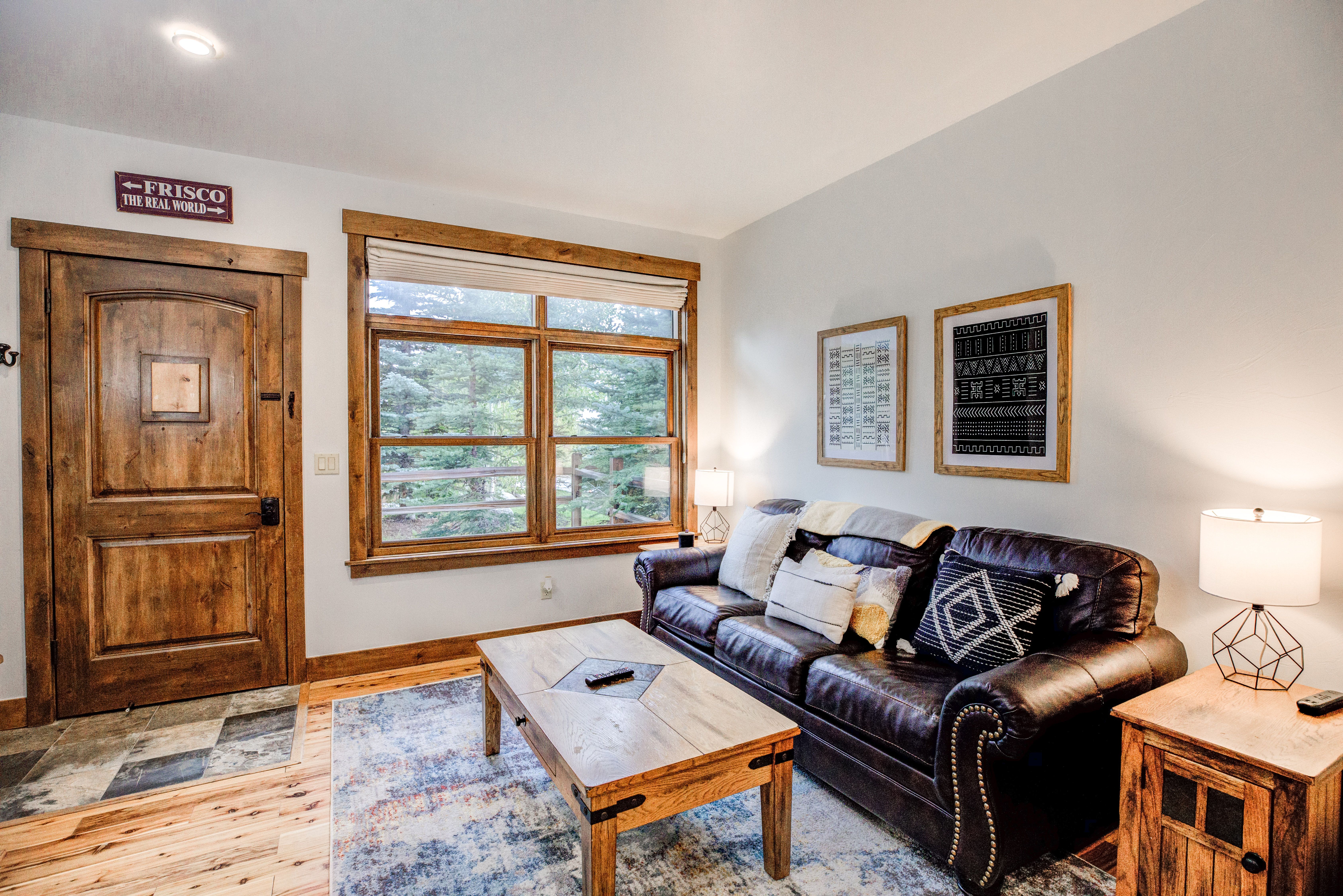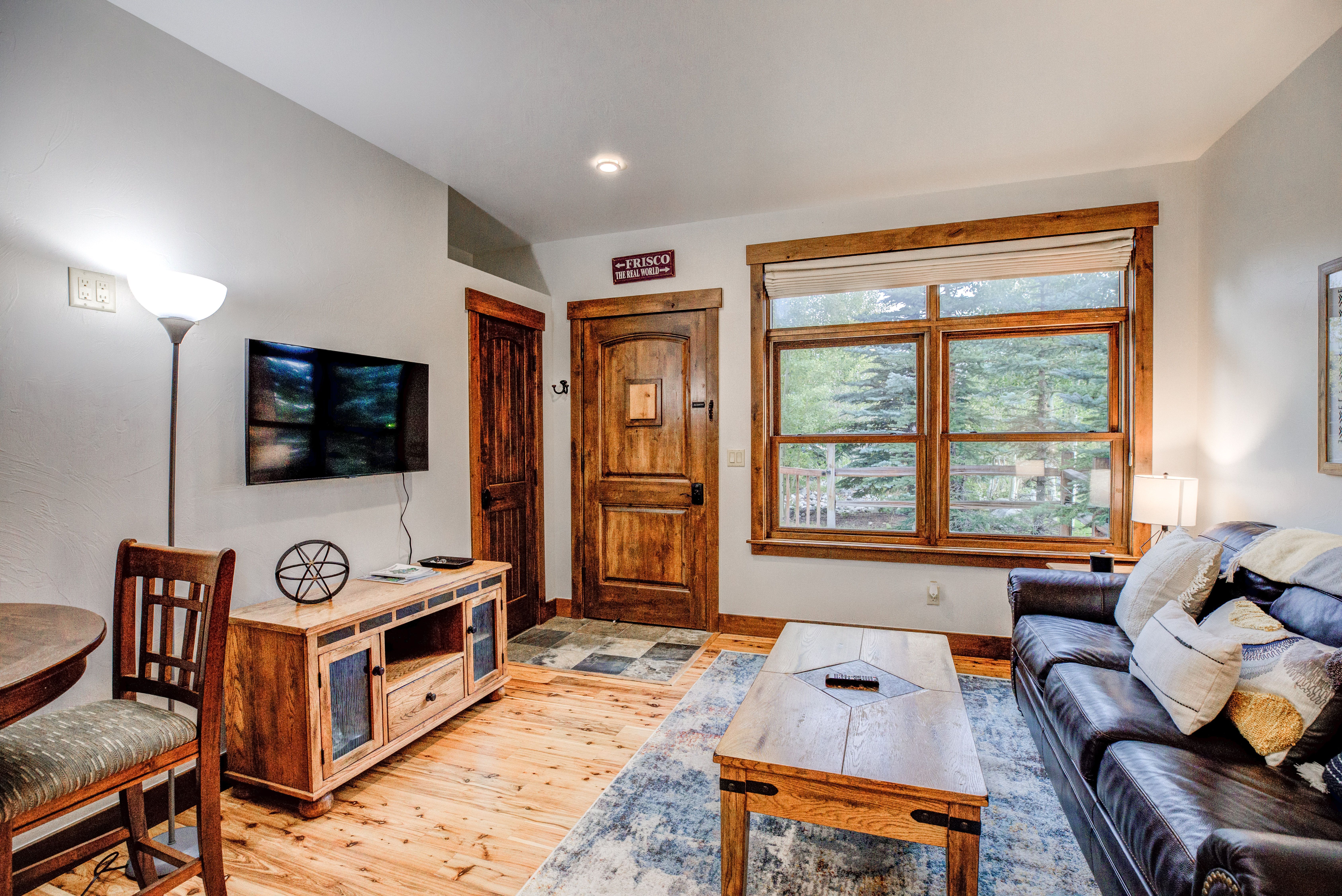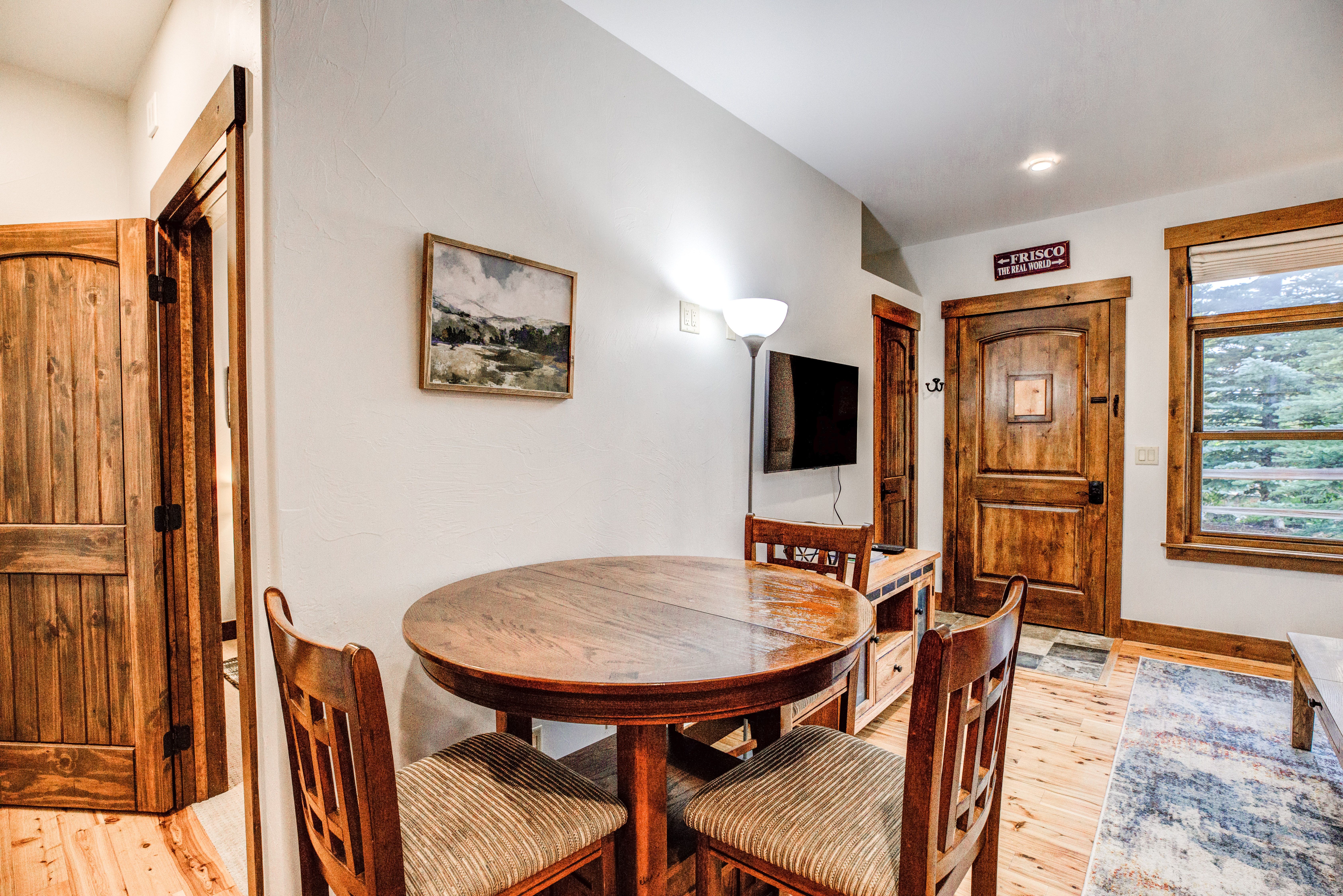 Here’s a stylish condo in a fantastic location close to Main Street, the Frisco Marina, the Lake Dillon bike path and more. Stroll to the marina or head downtown for dinner. And you’re just a quick drive or free bus trip (5-minute walk to bus stop) to Copper Mountain, Breckenridge, Keystone and Arapahoe Basin. You and your group will love it!