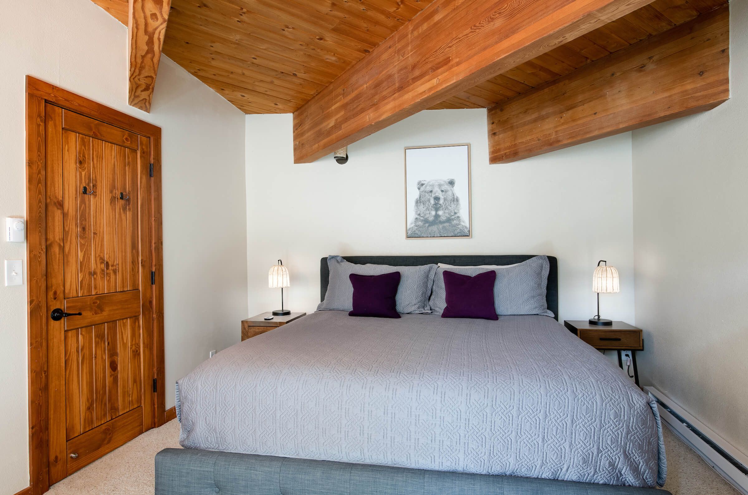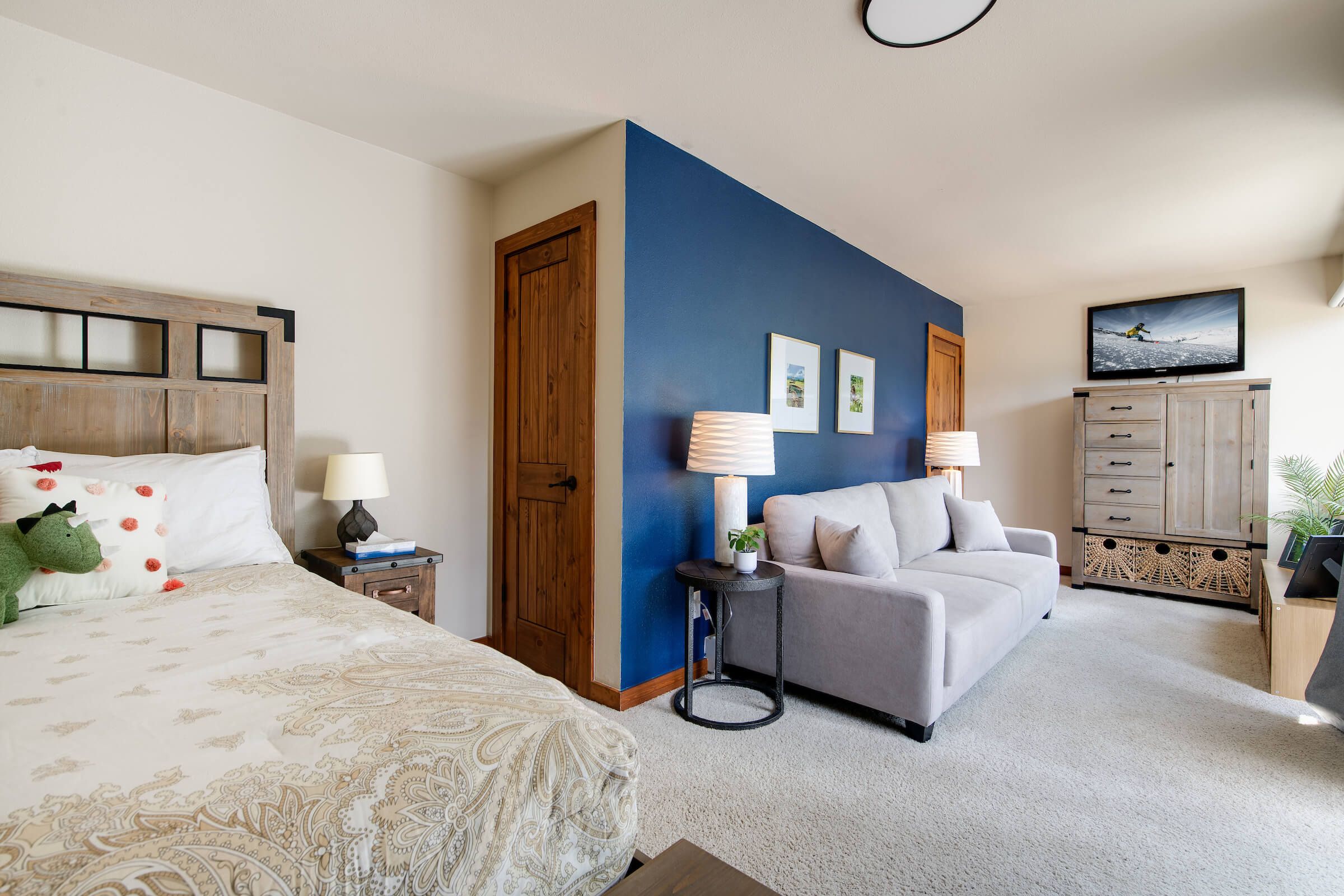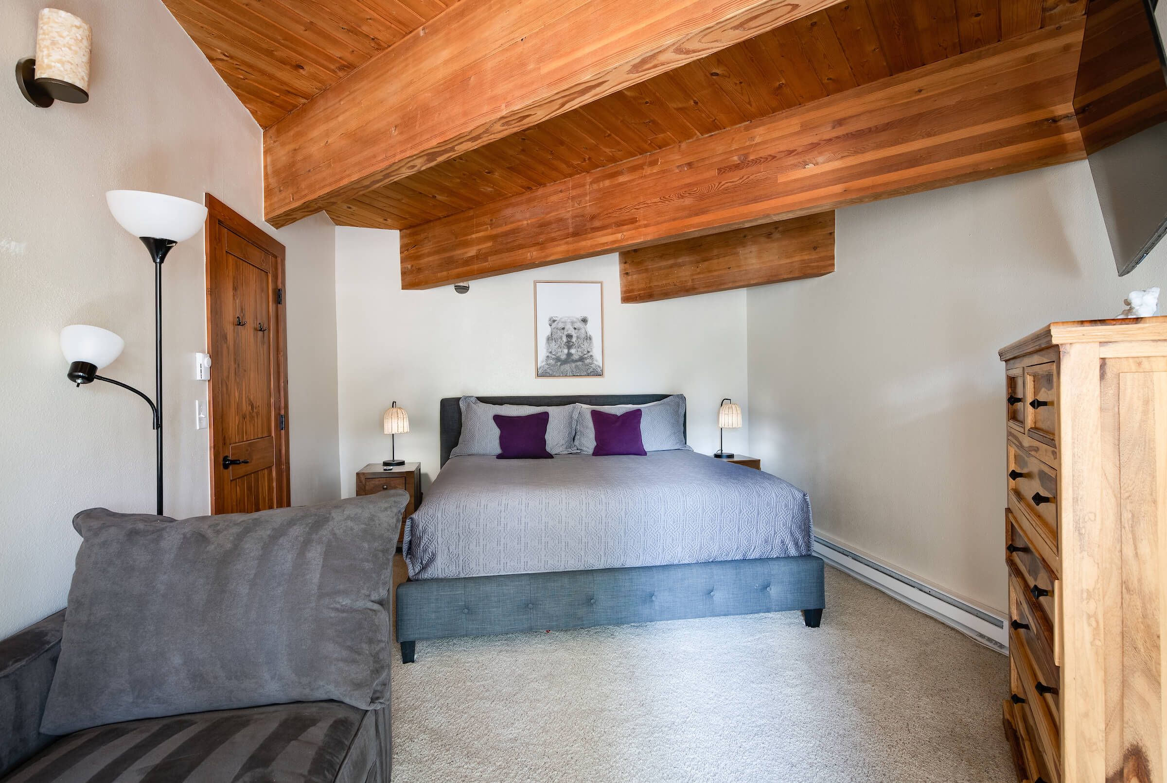 - Queen suite: queen bed, queen sofa sleeper, private bathroom with shower, Smart TV, private deck with sofa and lounge chairs, mountain/slope views. (sleeps 4)Â
