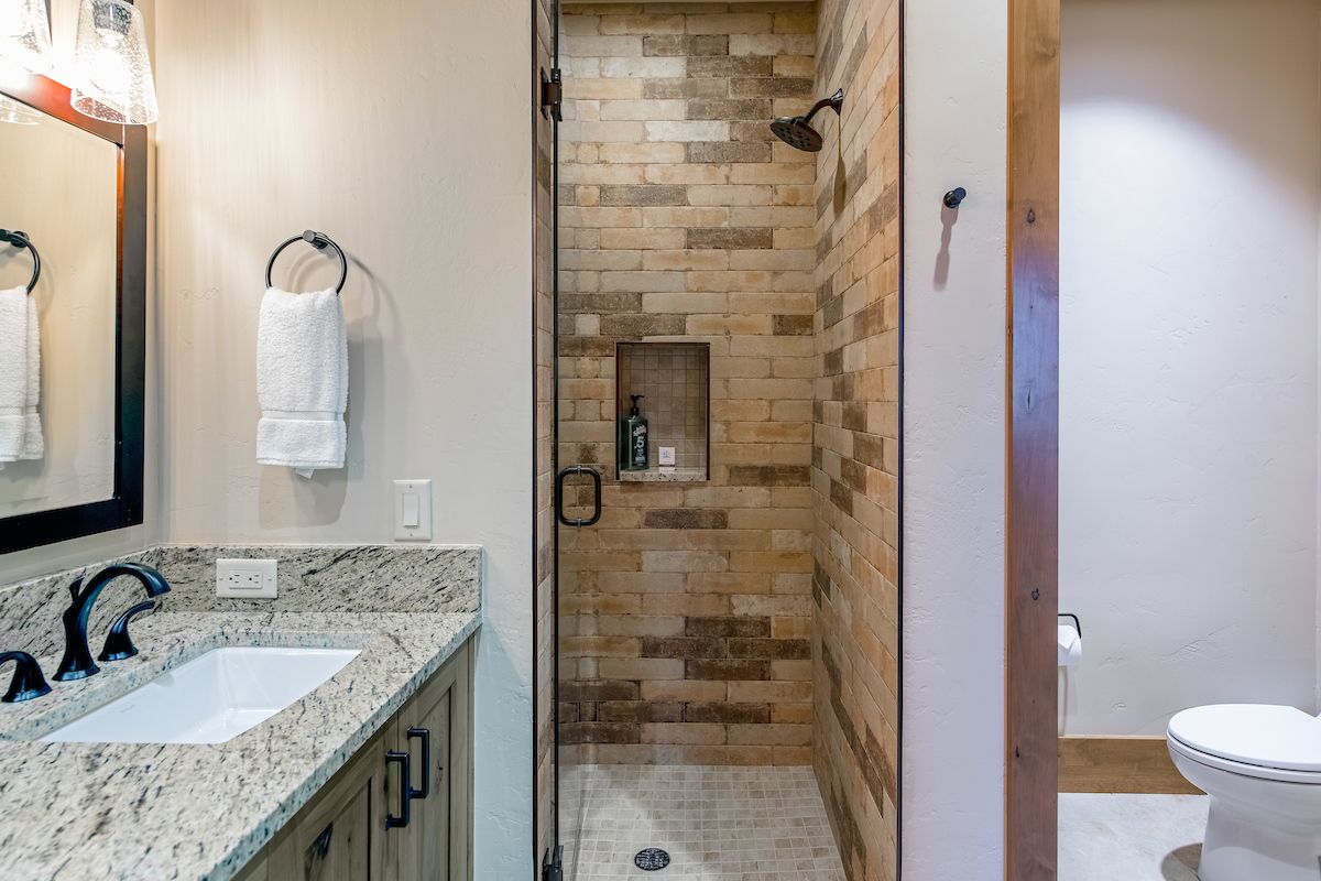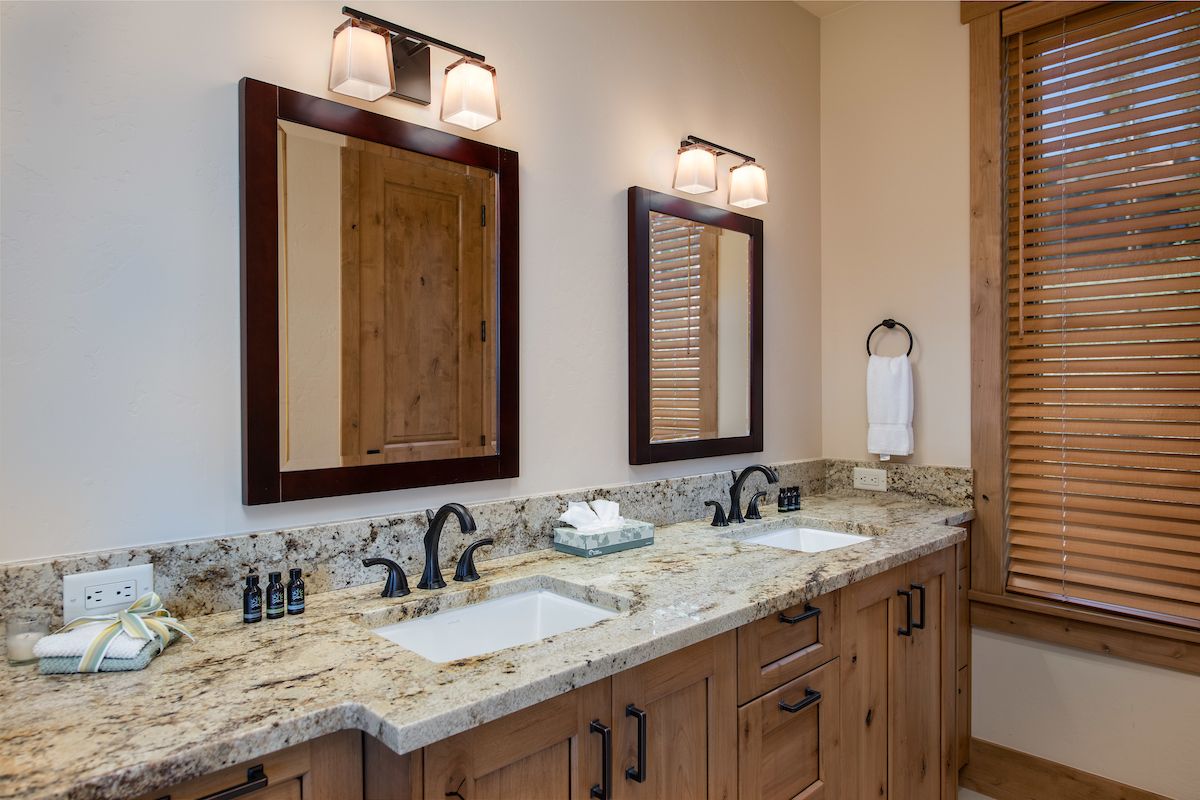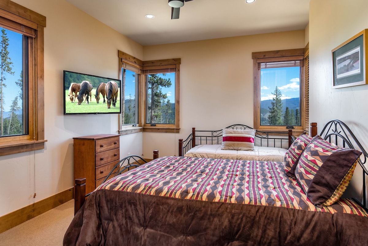 • Private and Scenic Bedrooms: Each bedroom is a sanctuary of comfort with thoughtful touches like picture windows, flat-screen TVs, and en-suite bathrooms. The master suite features a king bed, a private balcony, and a luxurious bathroom with dual sinks and a walk-in shower. The two additional bedrooms on the lower level offer flexible sleeping arrangements ideal for groups.