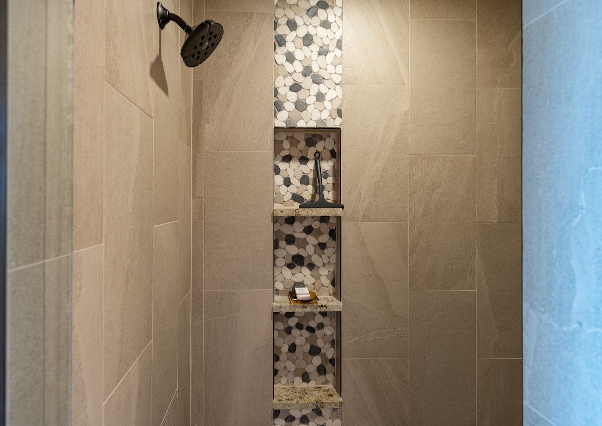 - King Master Suite: King bed with a private balcony, stunning views, and a luxurious en-suite bathroom with dual sinks and a walk-in tile shower (sleeps 2).