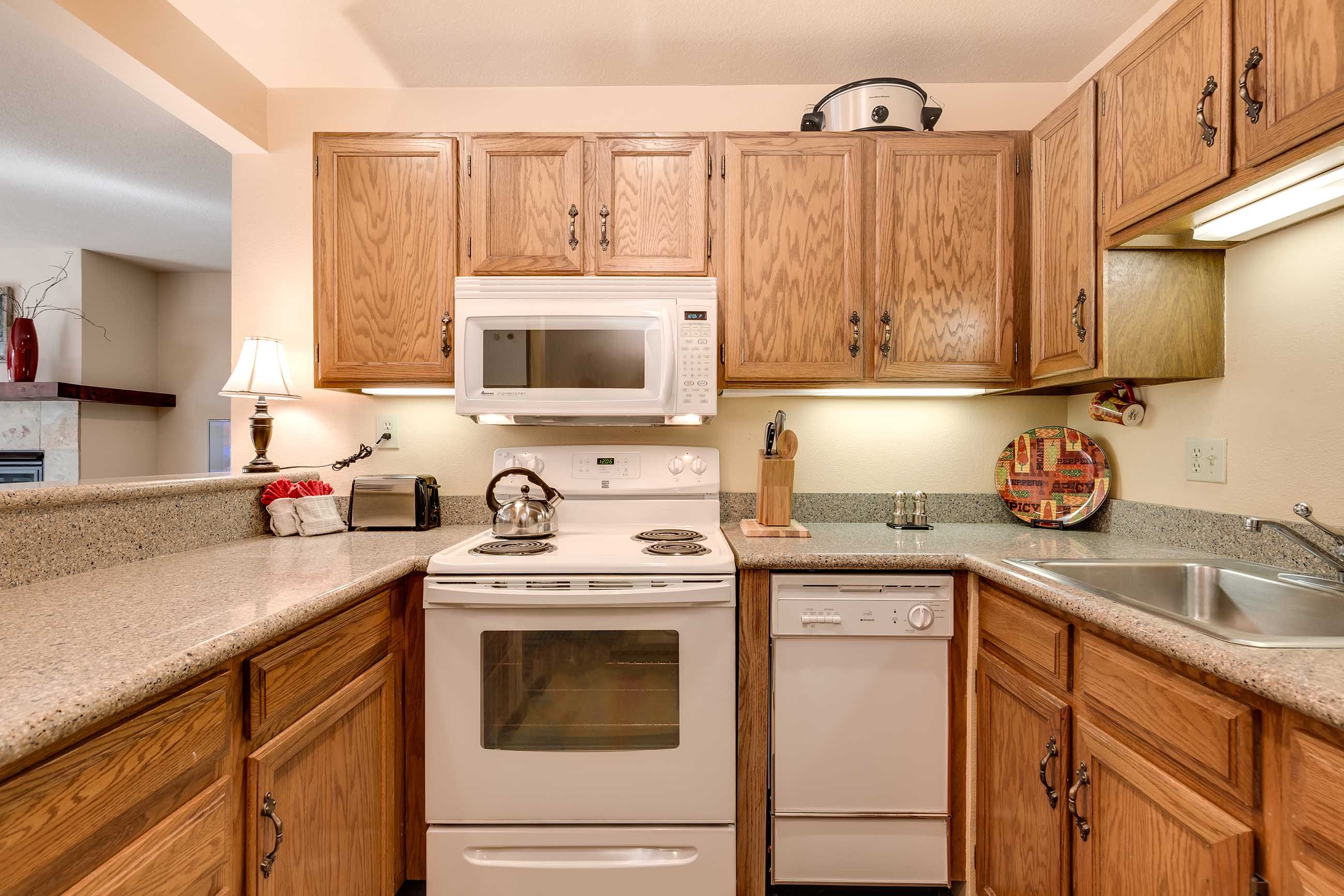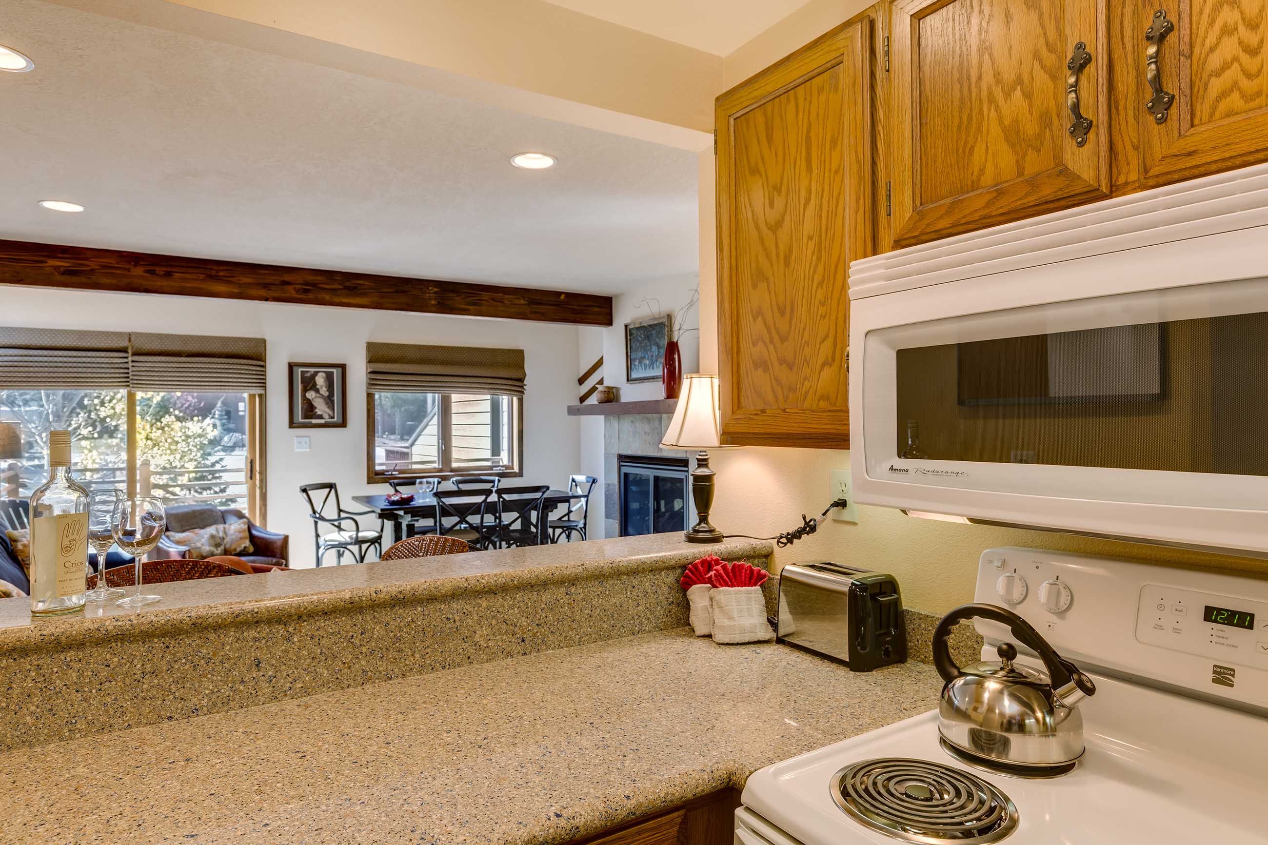 Other amenities include a washer and dryer, complementary Wi-Fi throughout the unit, and a one-car garage with an outdoor parking space, too. As with all Summit Mountain Rentals’ properties, this property is professionally cleaned and inspected before each arrival and includes all the bed linens and towels you need, as well as basic toiletries. Plus, our helpful staff is available 24/7 to ensure your stay is as enjoyable as possible.
